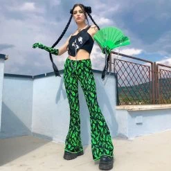 Pantalon Streetwear – Flammes Vertes